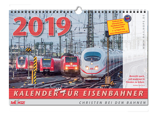 mit schönen Fotos von Bahnen und dazu passenden Worten aus der Bibel (in Deutsch und Englisch) und monatlicher Kurzandacht (Deutsch), im Format ca A5.